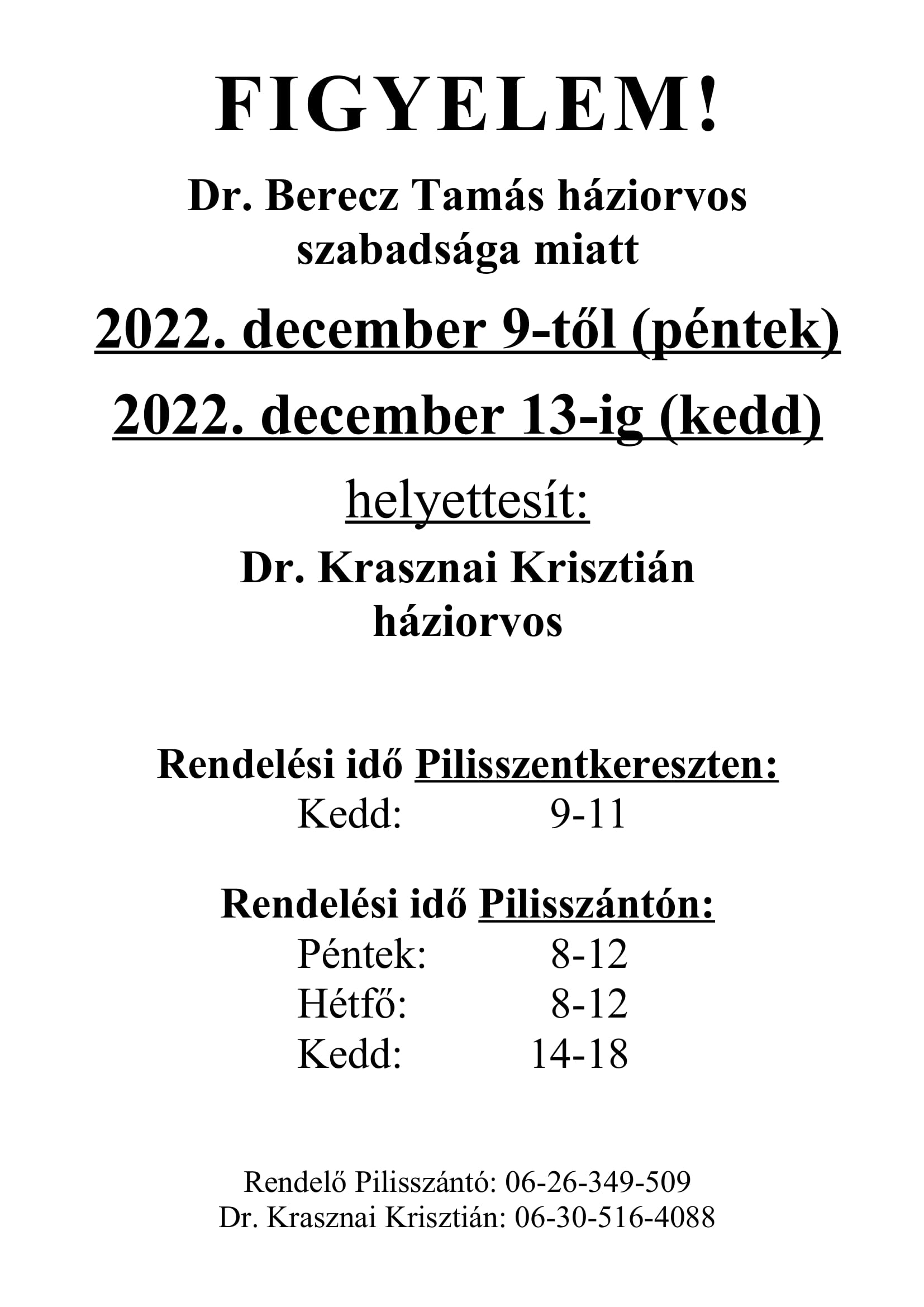 Rendelés helyettesítés 2022.12.9-2022.12.13.
