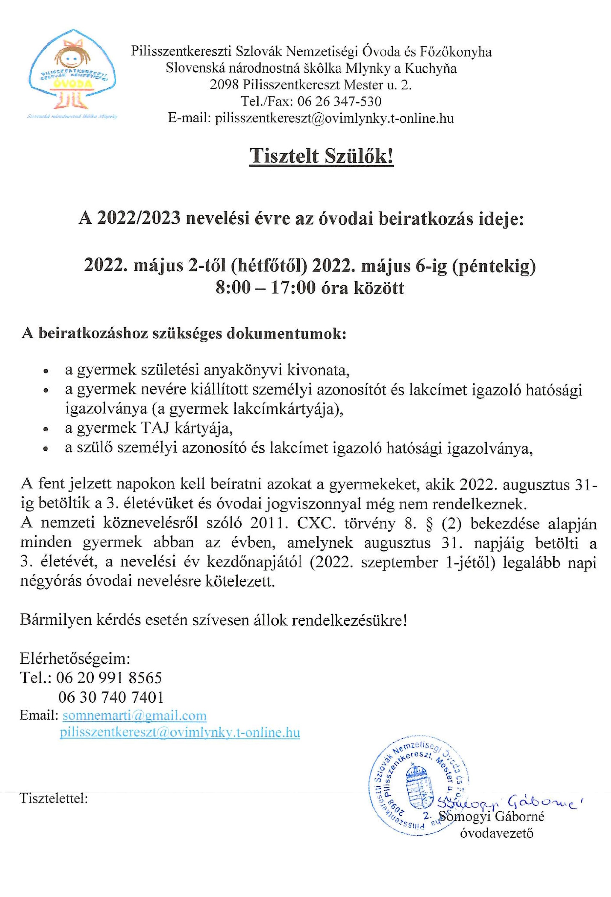 Óvodai beiratkozás