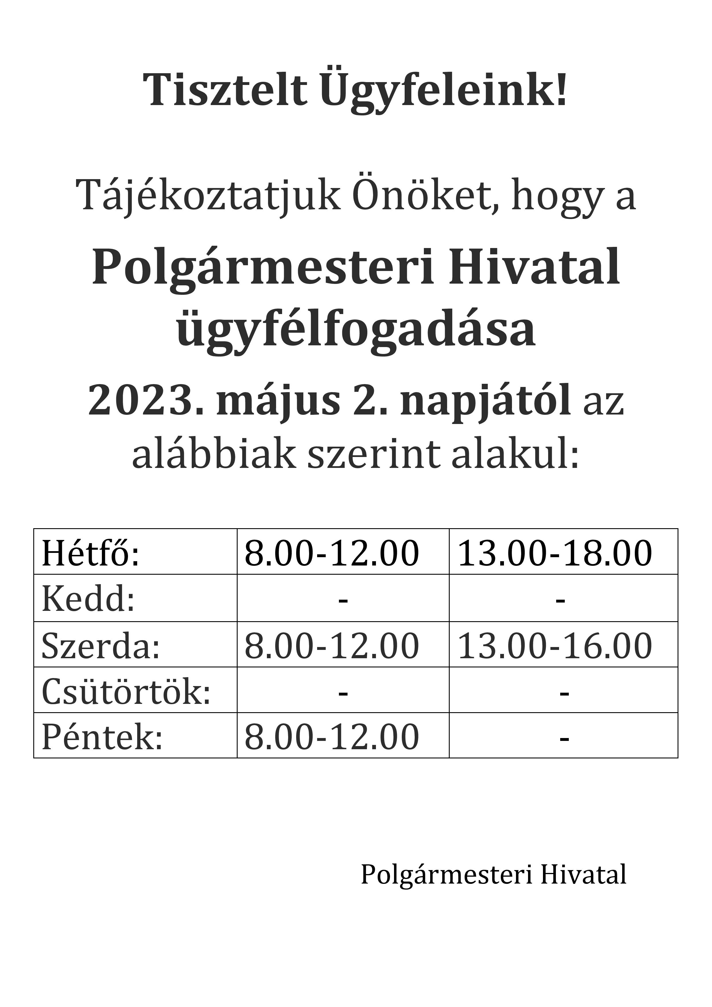 Polgármesteri Hivatal ügyfélfogadása