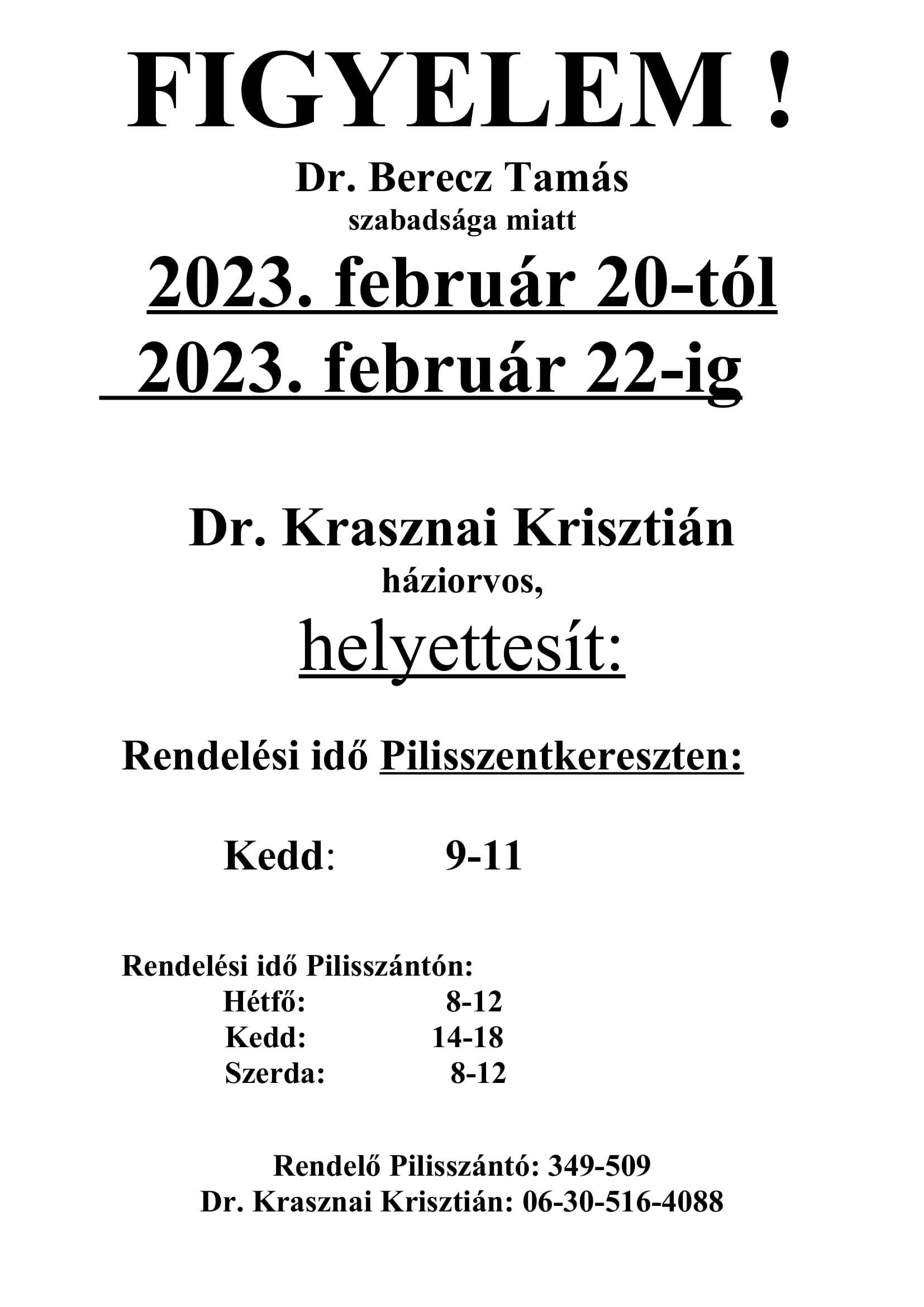 Háziorvos helyettesítés - február