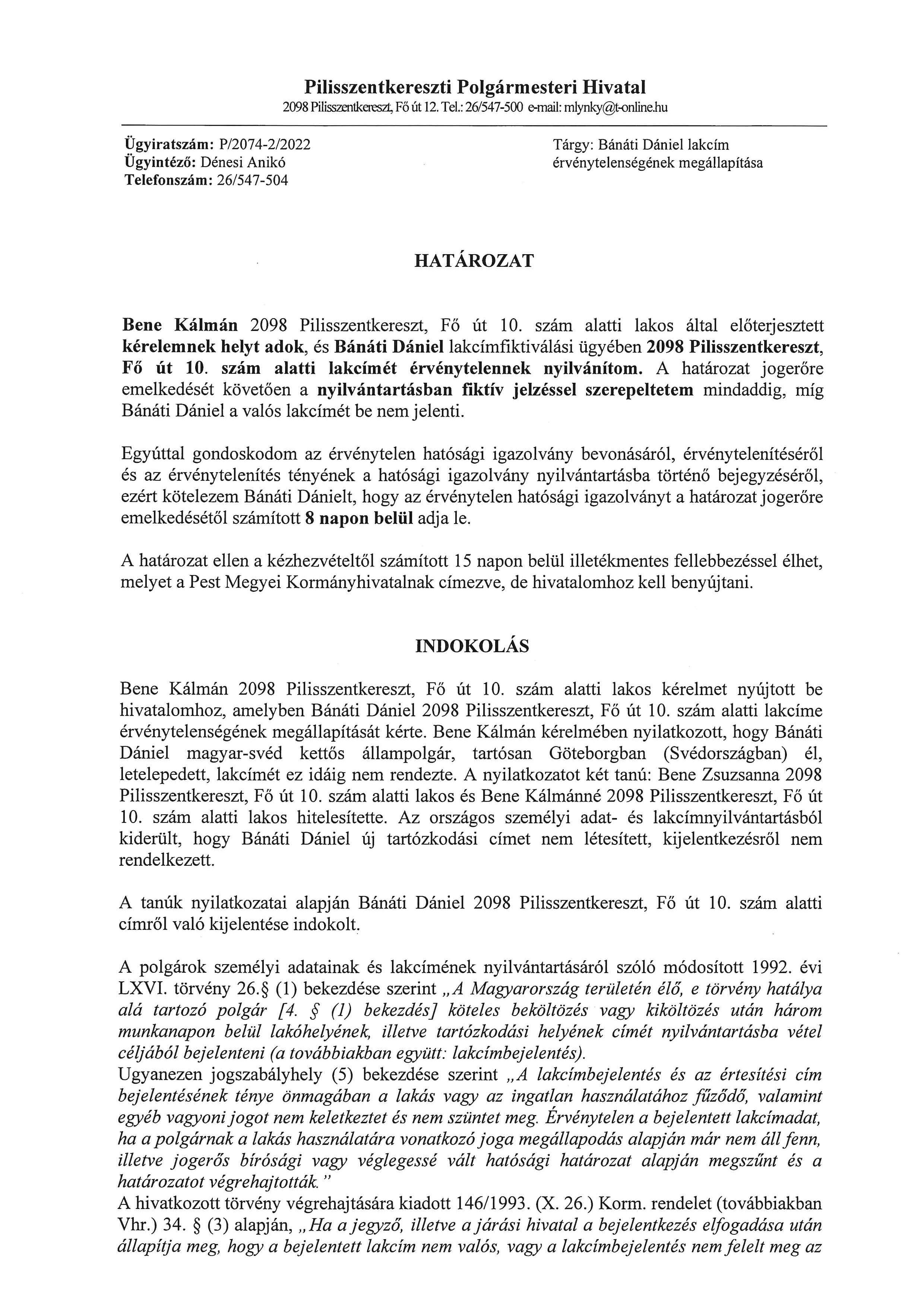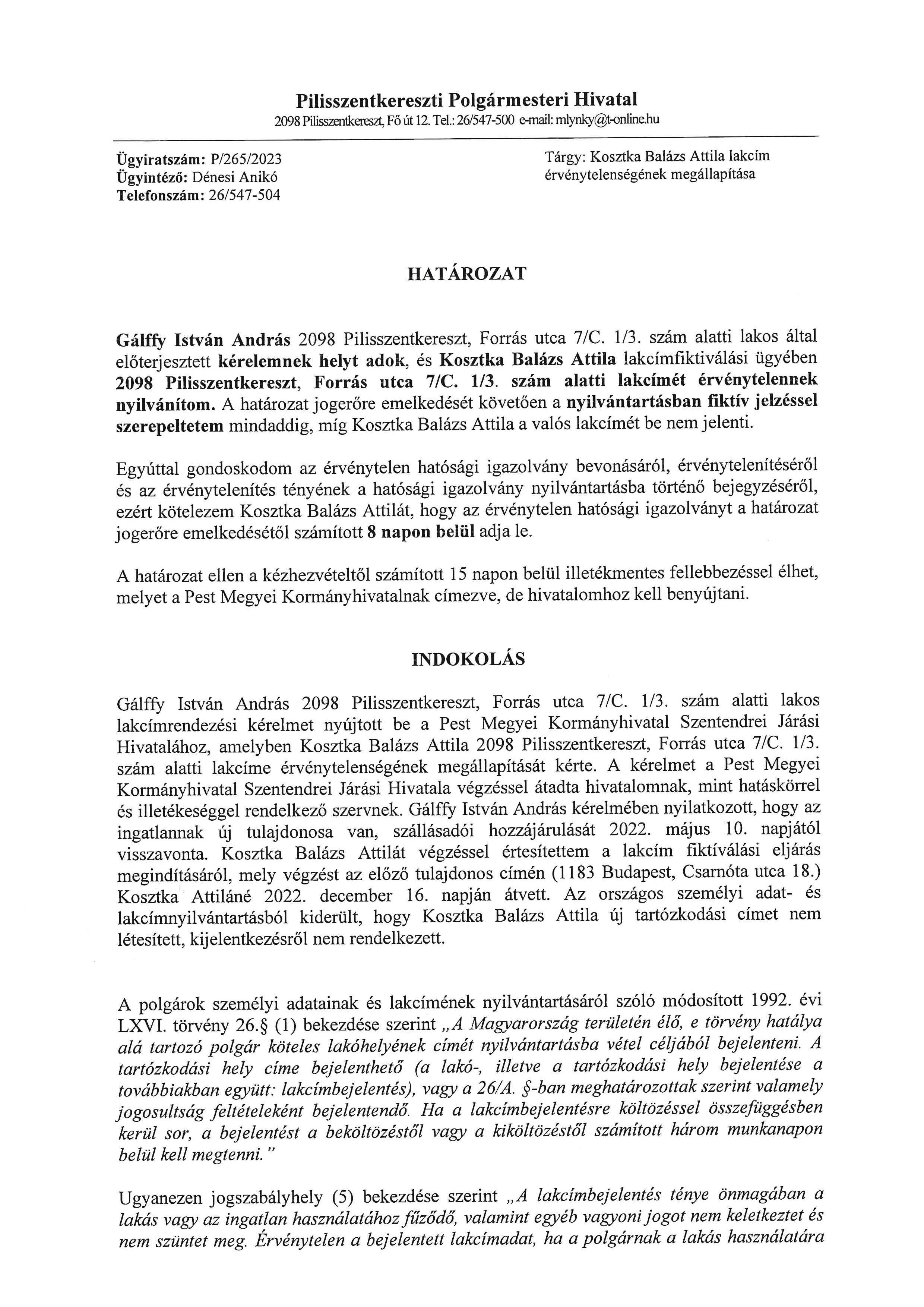Lakcím érvénytelenség - hirdetmények