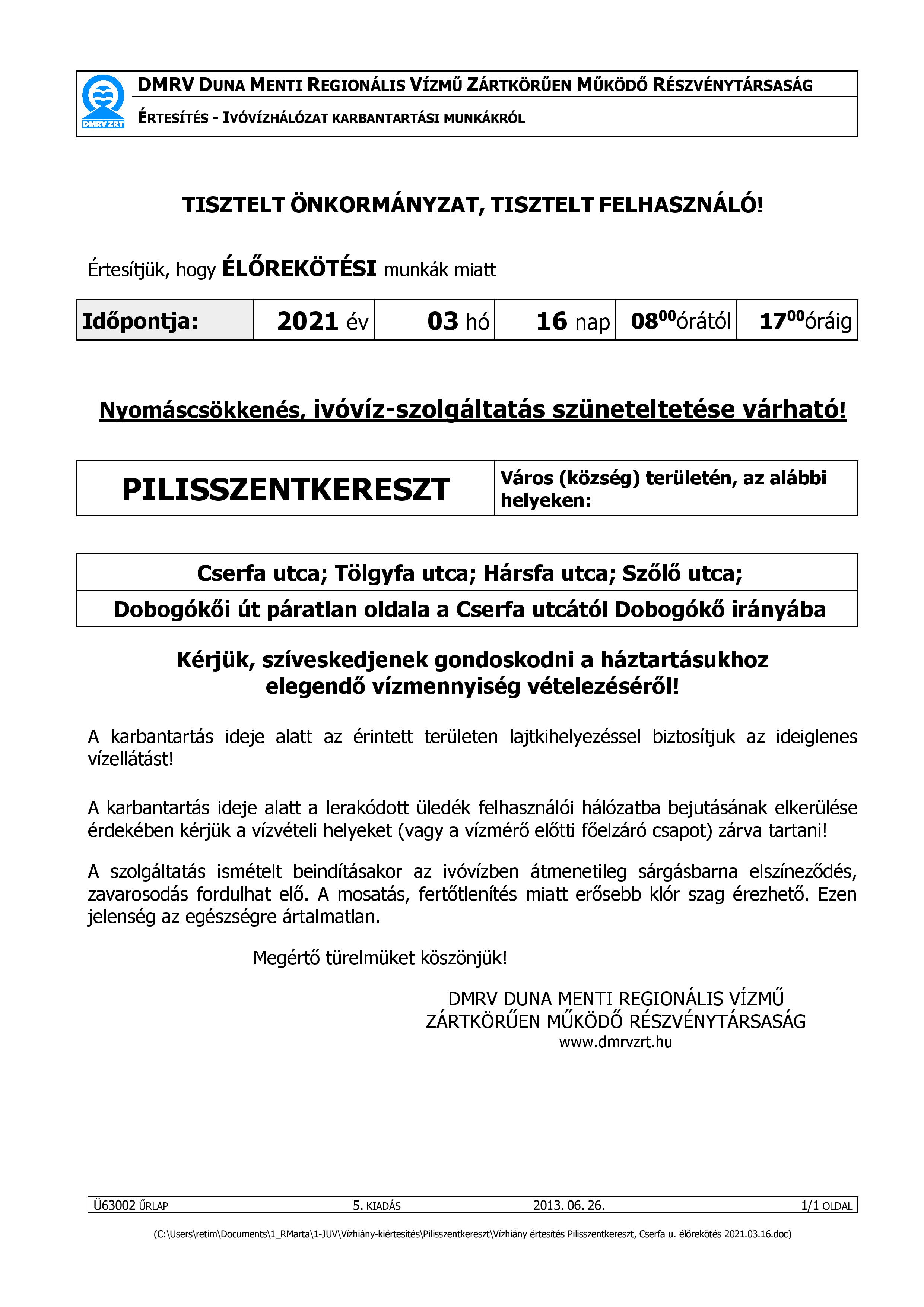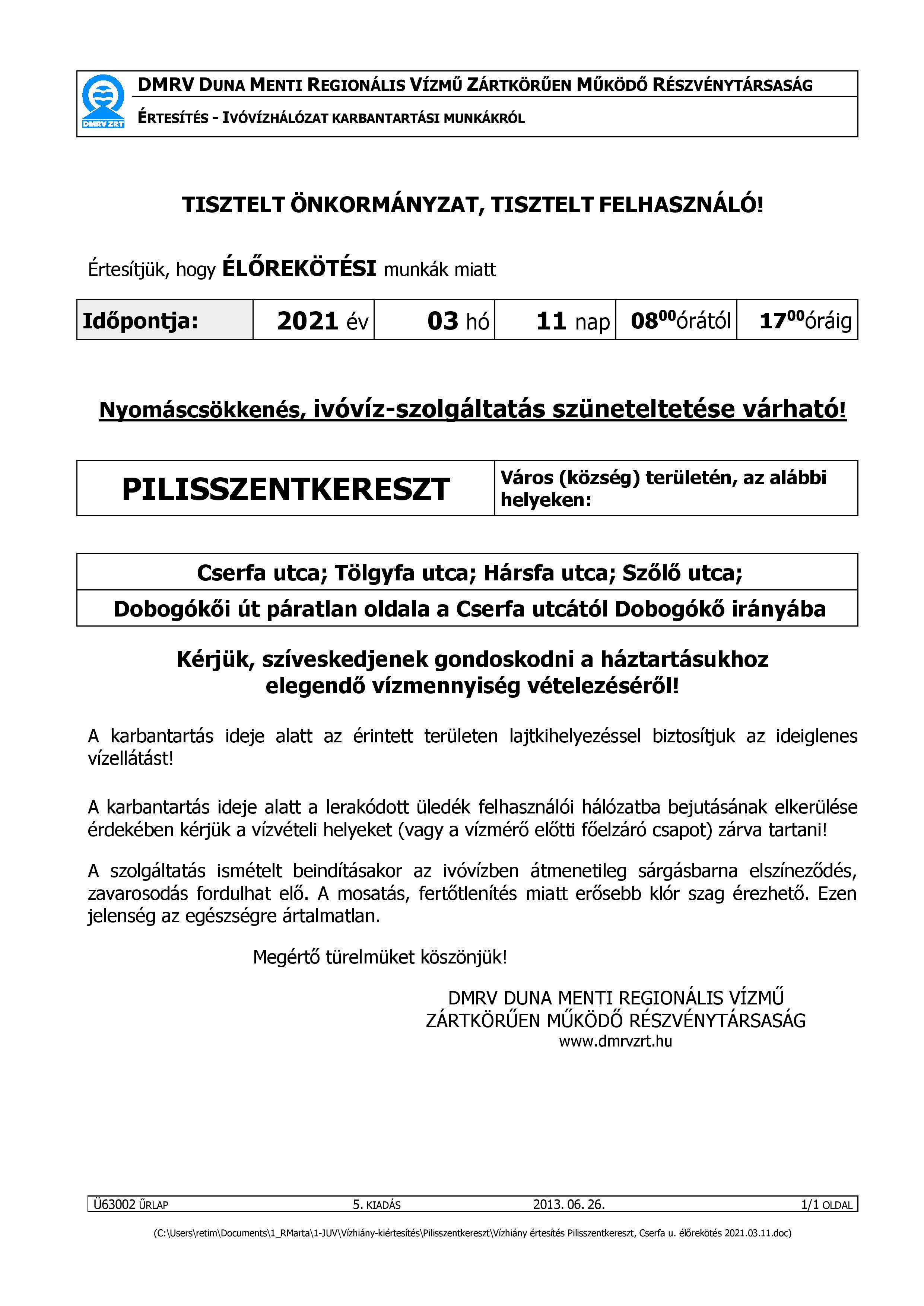 DMRV Zrt. tájékoztatása
