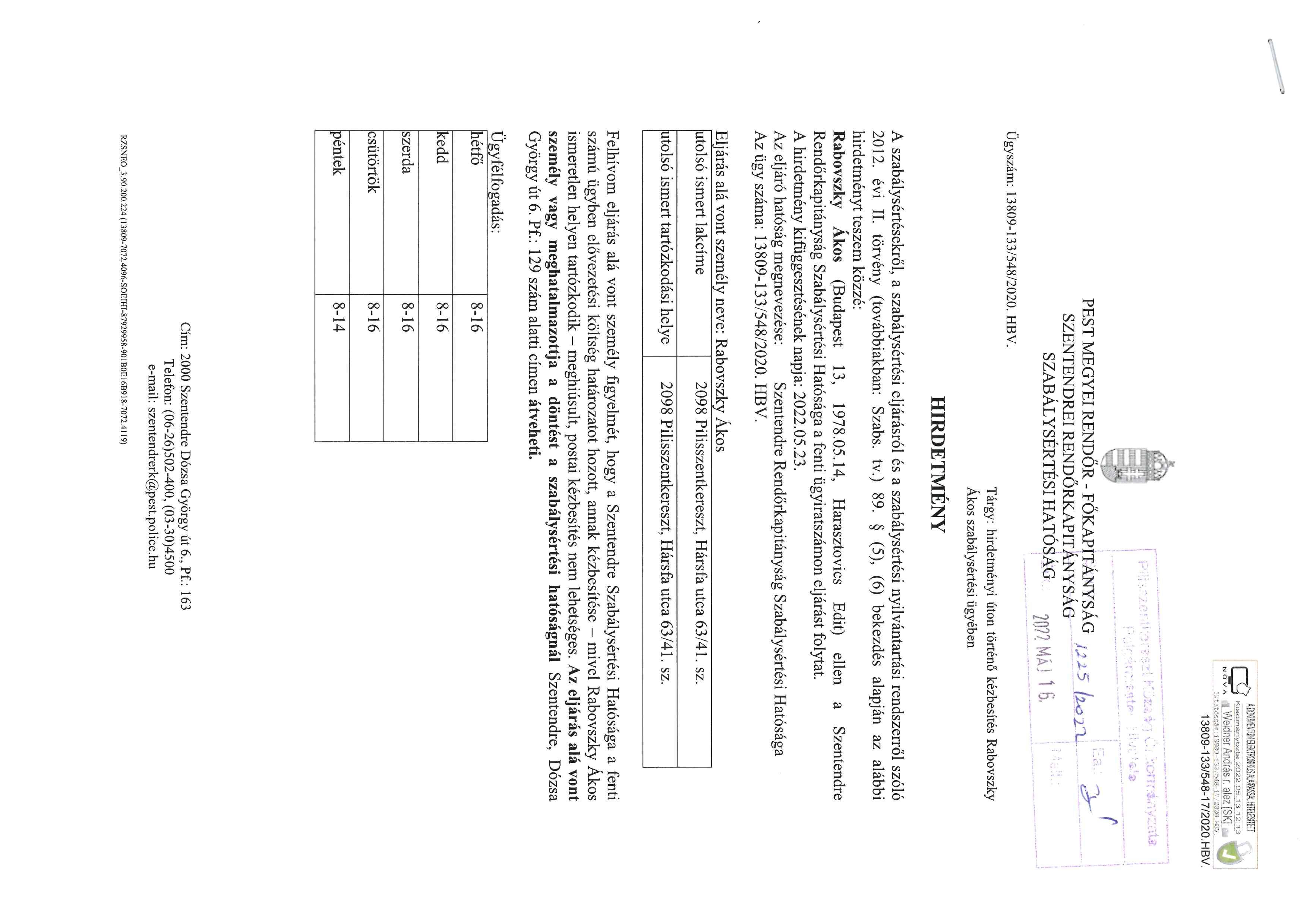 Kifüggesztés - Rabovszky Ákos szabálysértés