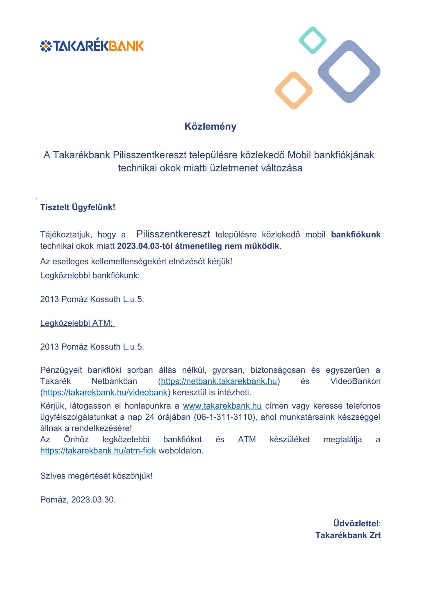 Az ülés helye: Pilisszentkereszt, Fő út 14.
