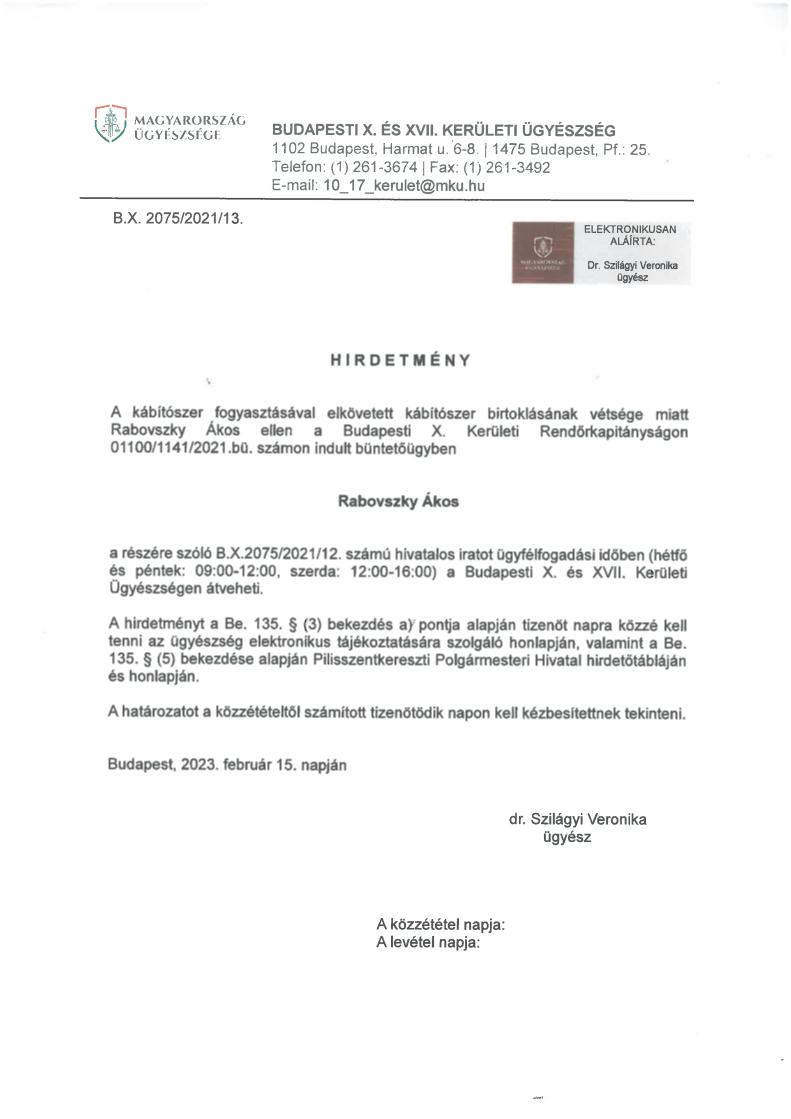2023. április 21. (péntek) 8-17 óra között