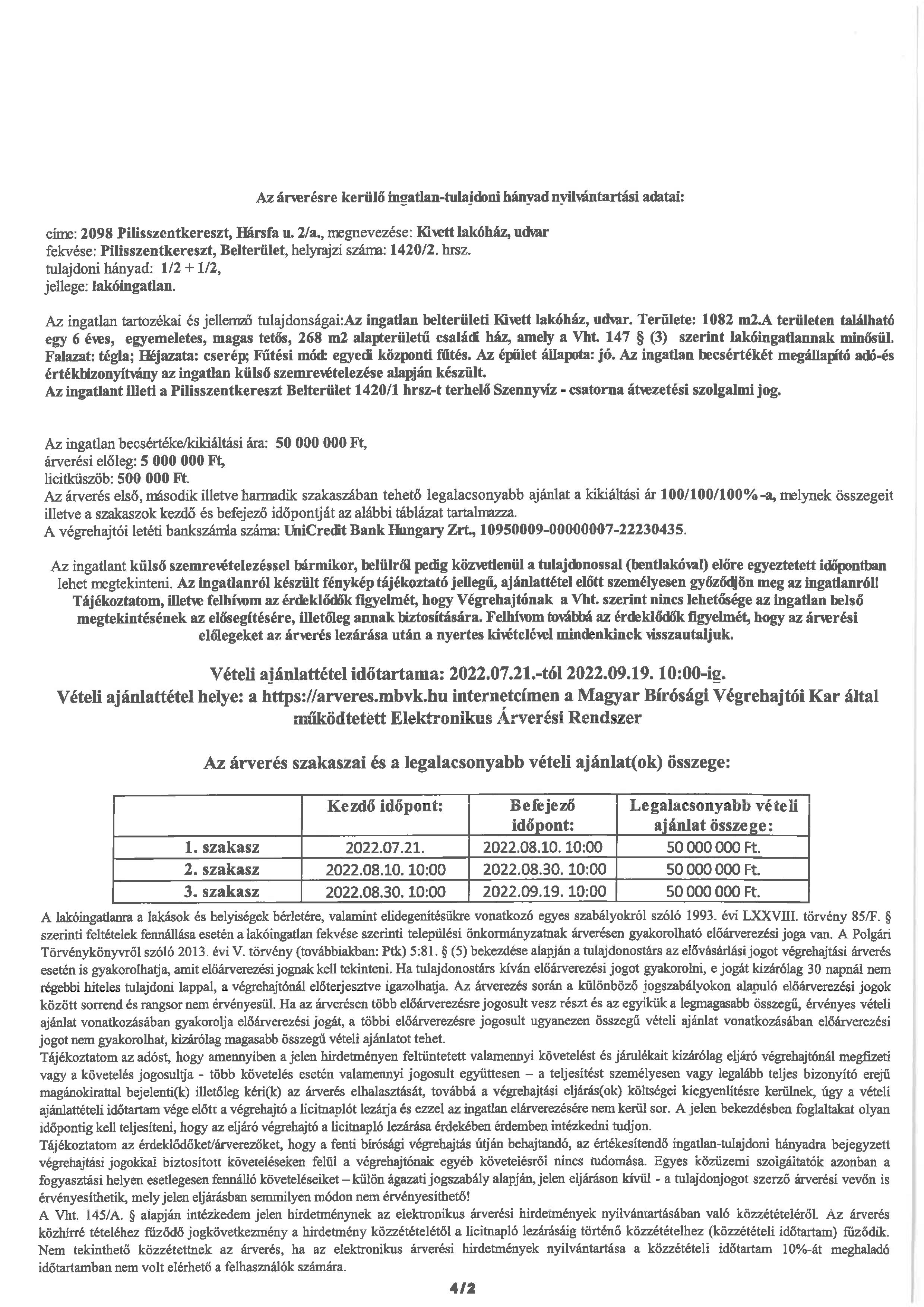 Ingatlanárverési hirdetmény